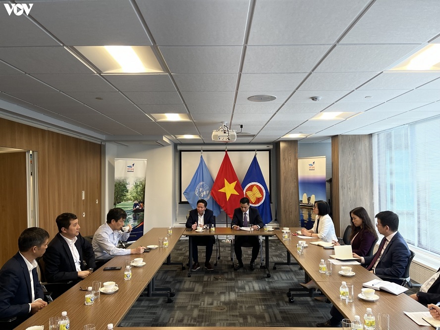 VOV delegation had a working session with Vietnam's delegation at the UN (Photo: VOV)