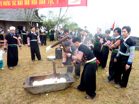 | Mong men making sticky rice cake in a spring festival |