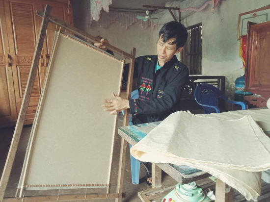 Duong Van Quang of Khe Nghe hamlet is making poonah papers.