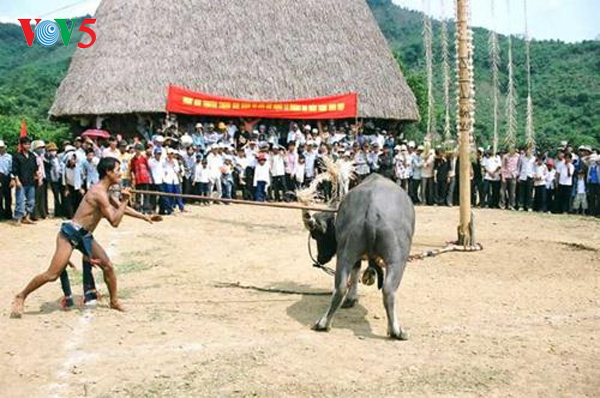 When guests from other villages arrive, the hosts welcome them with rice powder and alcohol, which is part of a protocol to prevent evil from entering the village. The night before the ceremony, hosts and guests dance and sing to the musical accompaniment of gongs and other musical instruments. The next day, they gather at the communal house to watch the village chief perform rituals which include reading a sacrifice oration to send the buffalo to the Jade Emperor.