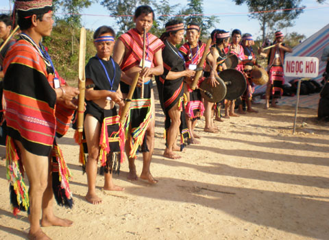 Traditionally, a Brau man wore a loin-cloth without a shirt on. A woman wore a ragged skirt. In summer, both men and women were half-naked or wore short tunics. In winter, they covered their bodies with a soft sheet of cloth. As time went by these clothes have been modified. Now men wear a tunic in a square shape. The front flap is of a bight color with dark stripes on the shoulders and fringe. The tunic’s back is marked with horizontal stripes on the lower part. Female attire is more elaborate with patterns. Nguyen Phong, a researcher of Central Highlanders’ costumes, told VOV: “The designs differ between male and female clothes. Men’s designs are rugged with such shapes as arrows and fences while women’s designs are flowers and plants, with accessories in agate and bead”.