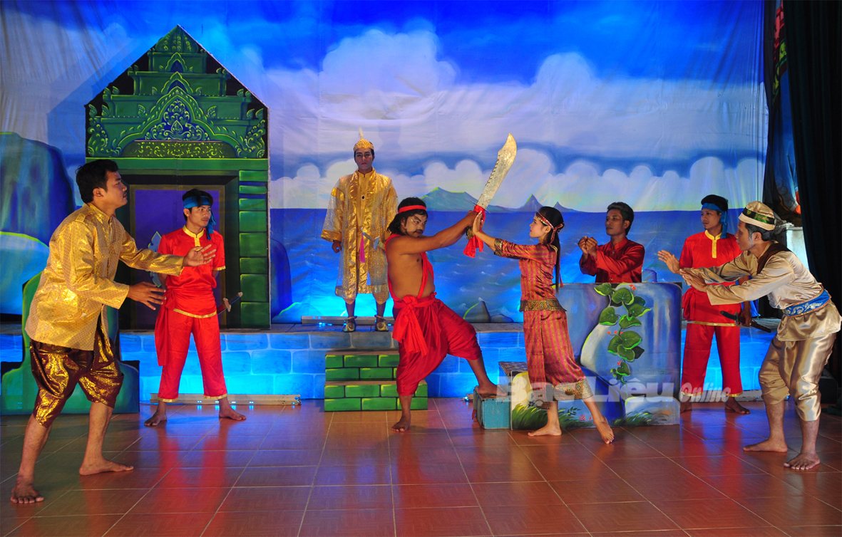 Professor, Doctor Le Ngoc Canh, talks about the theatrical dance of the Khmer: “Theatrical dance has three types: Ro bam, Du ke, and Di ke. The Ro bam dance is similar to Tuong drama; the Du ke dance is similar to Cai luong, reformed opera; and Du ke is similar to Cheo, popular theater, of the Kinh. Ro bam dance is a typical Khmer stage performance with symbolic hands and legs dance movements. Ro bam dances are based on legends.”