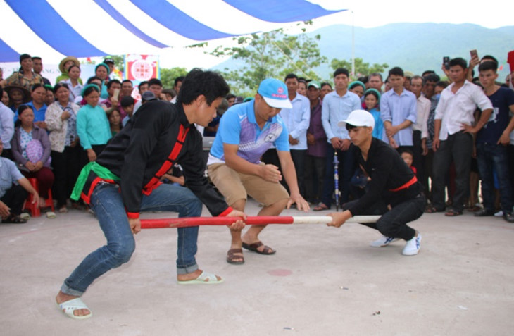 The “Wind prevention” Festival features cultural and sports events such as throwing a cloth ball through a ring on top of a tall bamboo pole, crossbow shooting, and weaving. Duong Tai Mui, a local woman, says: “I follow the old custom of attending the fair. I meet and talk with old friends. Everyone goes to the festival. No one works.”