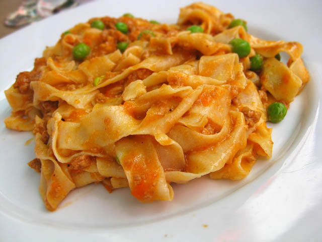 Pappardelle with wild boar ragu, another Tuscan signature dish. (Photo: Jason Lam/Wikimedia Commons) |