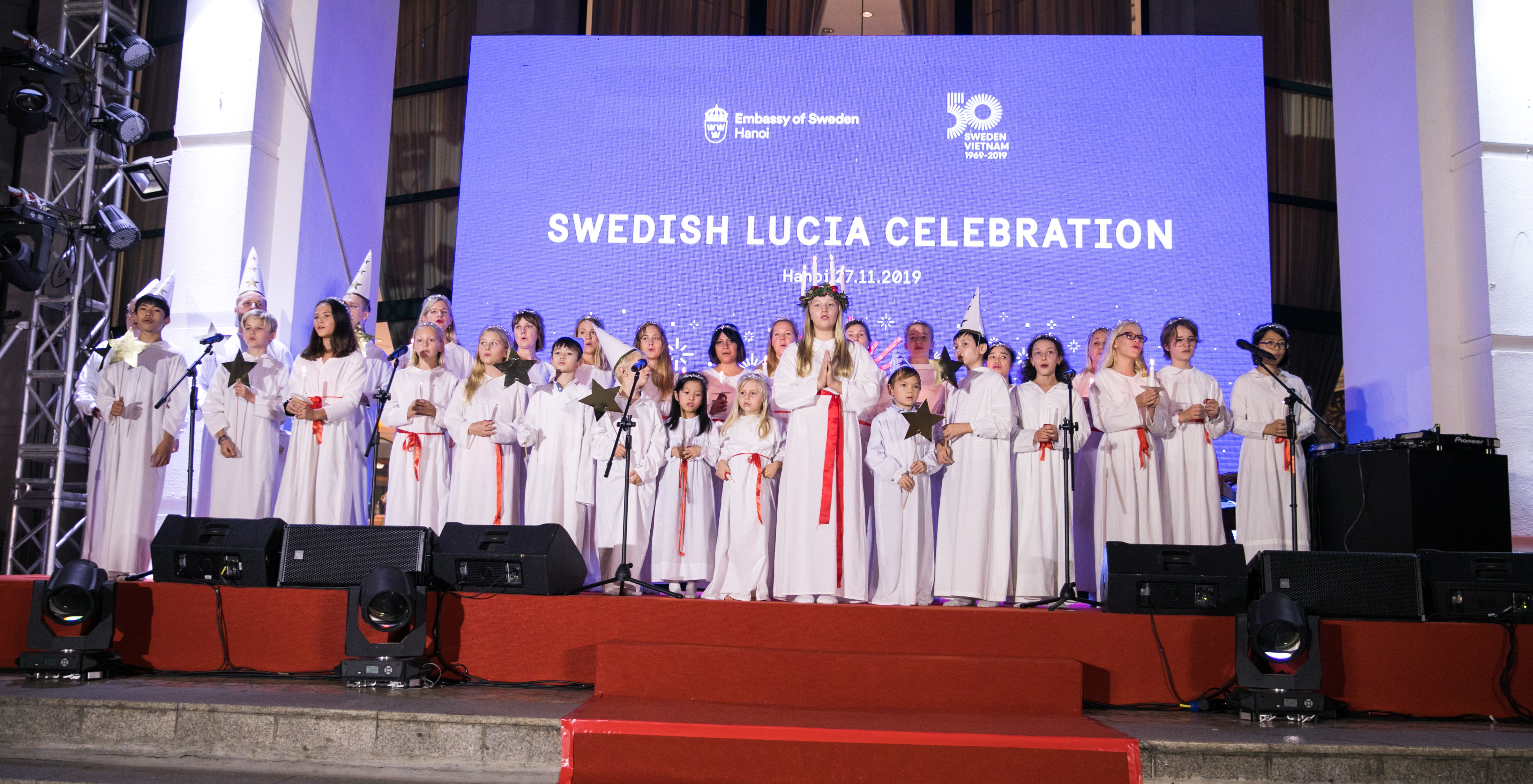 Johan: That can be sometimes a bit delicate. Sometimes there is a bit of a competition as many people wants to be the Lucia. Traditionally it's always been a female Lucia. But in Sweden when we are testing all norms, we have also started having male Lucia, as in some places. That adds another version of delicacy because then you have even more people who could potentially be the Lucia. But here in Hanoi we have always said that it's the oldest female that has not yet been the Lucia this year.