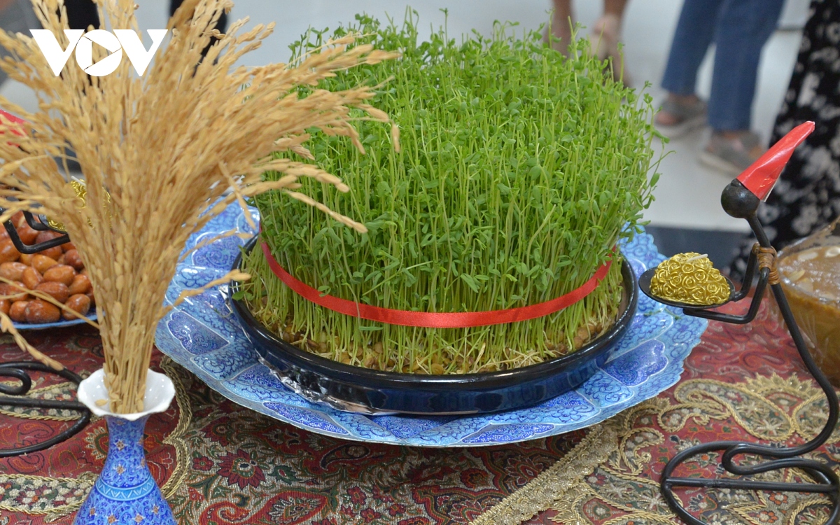 The center of the half-sin table is a tray of sabze or wheat or bean sprouts symbolizing rebirth and freshness. (Photo : Trung Hieu) |