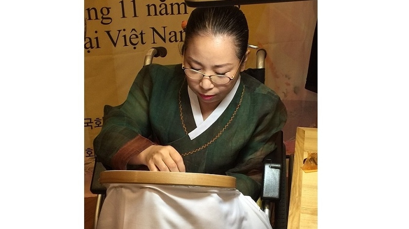 Lee Jung Hee, an artist from the Republic of Korea, is famous for her sophisticated embroidered pieces. Lee started doing this royal art when she was seventeen. She has overcome a physical disability and made a great effort to pursue this traditional art of embroidery, receiving the Presidential Award for “Disabled People in Arts and Culture” in 2013. She has become a key figure in preserving and promoting traditional Korean culture. Lee is visiting Vietnam for the first time to show her 44 embroidered works of art featuring South Korea’s royal embroidery techniques at an exhibit at 47 Nguyen Du Street. On the first day of the exhibit, the artist also demonstrated a number of traditional Korean embroidery techniques. Lee said: “For an artist, every work of art is a masterpiece. Every embroidered piece is a different experience, so it's hard to say which one's my favorite. But the most special one is the curtain entitled “green dragon white tiger”, which features mountains and clouds with a dragon and a tiger facing each other. This piece took me three years to finish.”