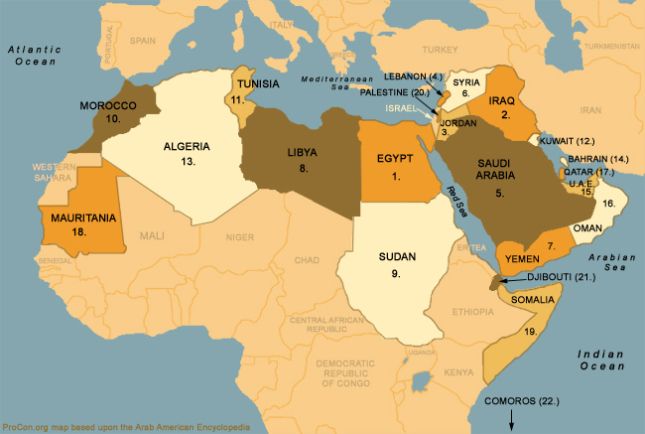 Map of the Arab world. (Photo: Internet) |