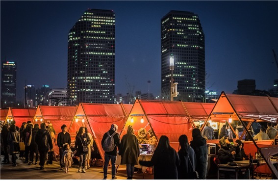 J: Rent a bicycle at the entrance of the Han River Park and enjoy the autumn scenery. If you’re tired a little, stop your bike, go up to the observatory café, have a cool drink and go to the night market. Nature, scenery, culture and people, food and entertainment in the cool autumn weather will make your day so rich.
