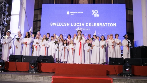 (VOVWORLD) - The annual candlelit Lucia procession on December 13 is one of the more exotic Swedish customs, with girls and boys clad in white full-length gowns singing songs together. When the 400-year-old tradition of St. Lucia is celebrated, you will see thousands of young girls emerge from the darkness of a Swedish winter’s day and gently silence the crowds with a procession of light. How exactly is Lucia Day celebrated in Sweden? Johan Alvin, the Swedish Embassy's second secretary and his wife Marika Alvin will give you the answer.