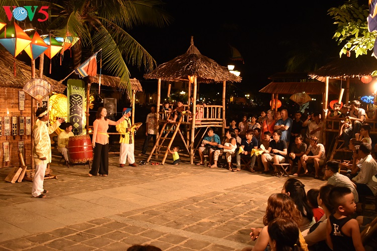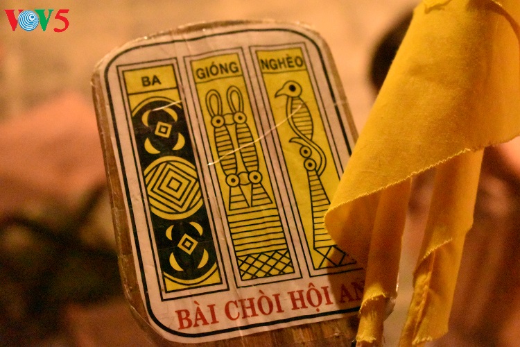 "Visitors can take part in a game which lasts for 7 minutes. Participants will listen to artists singing folk songs of Quang Nam region and anyone holding cards that contain all 3 words mentioned in the songs will win the game.", said tour guide Vo Thi Phuong Hoai while introducing Bai choi singing and its regulations to visitors.