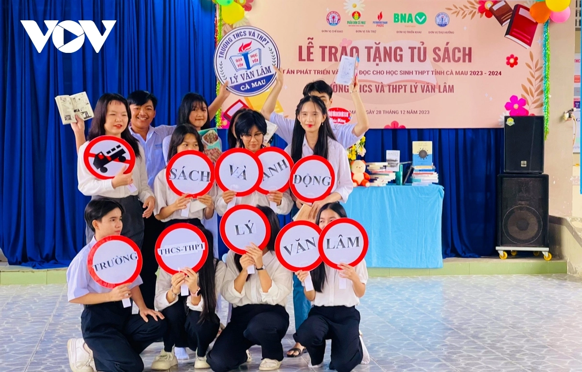 Ly Van Lam Middle and High School in Ca Mau city receives a bookcase as part of the “Book and Action” project. (Photo: VOV) |
