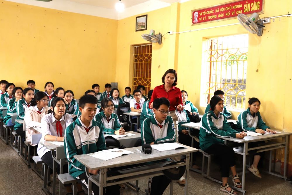 Teacher Nguyen Thi Thuy is the one who instills Cheo into the students’ hearts and minds. Since her young years, Thuy enjoyed singing along with the folk songs she heard on the Voice of Vietnam. As a geography teacher, Thuy never imagined that she would stand on stage teaching Cheo singing to students. Thuy said that even though it is integrated into only a few class hours, the students are enthusiastic and interested.