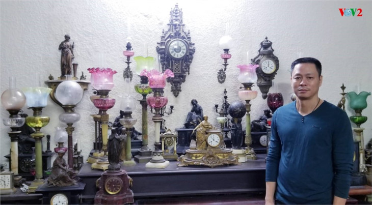 Tran Thanh Tung has travelled to many places to collect the 80 oil lamps in his collection. He told VOV: "I have collected oil lamps since 2010. In addition to travelling near and far to collect the lamps, collectors should have a good aesthetic sense. I used to ask friends of mine to bring me oil lamps I purchased at auctions abroad."