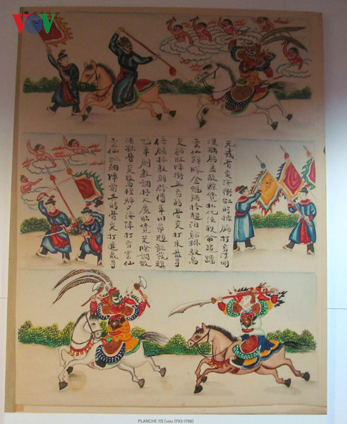 A French naval officer named Eugene Gilbert was struck by the idea of illustrating it with color pictures. He and painter Le Duc Trach of the Hue royal court worked on the idea between 1895 and 1897. When returning to France, Gilbert donated the work to the Academy of French Literature in 1899. This manuscript had been kept in the academy’s library for 110 years before Prof. Phan Huy Le found it in 2011. Dr. Pascal Bourdeaux, a researcher of the French School of the Far East who edited and annotated the manuscript, said he and his colleagues had travelled all over Vietnam to retrieve related documents: “During fact-finding tours, we discovered various versions of the Luc Van Tien story. We know that Poet Nguyen Dinh Chieu’s Luc Van Tien story is comprised of more than 2,000 verses in the sin-eight-word distich metre, which was passed down orally and became popular in the late 19th century. But this story gained more popularity when it was translated from ancient Vietnamese into modern Vietnamese and French”.