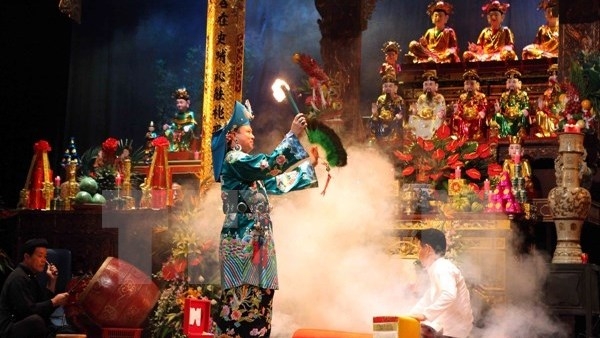 | Practices during the mediumship ritual, such as hymns, lively dances and colourful costumes, tell a lot about Vietnamese culture (Photo: VNA) |
