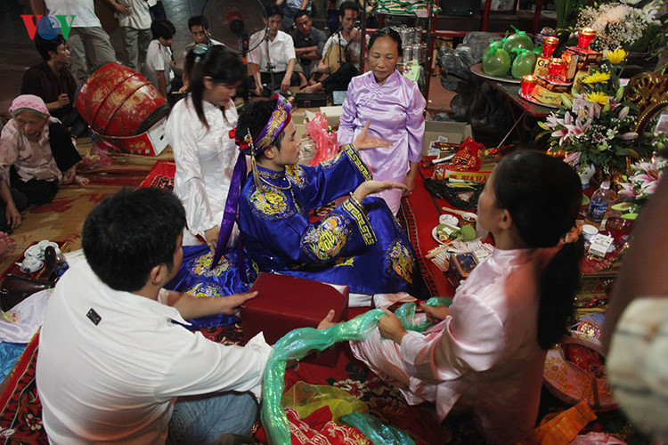 That was a piece of Hầu Đồng or trance ritual in Hanoi. Prof. Ngo Duc Thinh, a researcher of the Đạo Mẫu which worships mother goddesses, said going into a trance is a communication between deities and humans mediated by a medium. The ritual is the most important element of the Mother Goddess Worship belief:"The trance ritual usually takes place in March and August. Deities are incarnated in male or female mediums in ceremony accompanied by music and dance. Each ceremony may comprise of up to 36 incarnations of deities, who are believed to bless human prayers.”