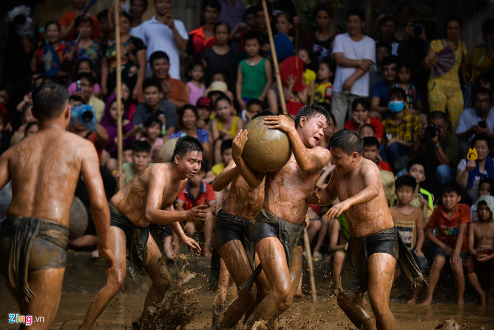 In the 4th lunar month, people in Van village in the northern province of Bac Giang, organize a wrestling festival to catch a lucky ball. At the festival, 16 strong, young men wearing loincloths are divided into two teams to compete for the ball, which represents the Sun. Nguyen Thi Huyen, a villager, said: “To start the game, the ball is passed from east to west, which is the rising and setting of the Sun. Catching the ball is to catch the sun to bring sunshine to rice and other crops.”