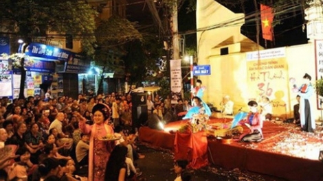 (VOVworld) – At the weekend, some streets in Hanoi’s Old Quarter are full of the sights and sounds of folk performances, attracting large crowds of visitors. These street shows contribute to promoting Vietnam’s traditional culture.