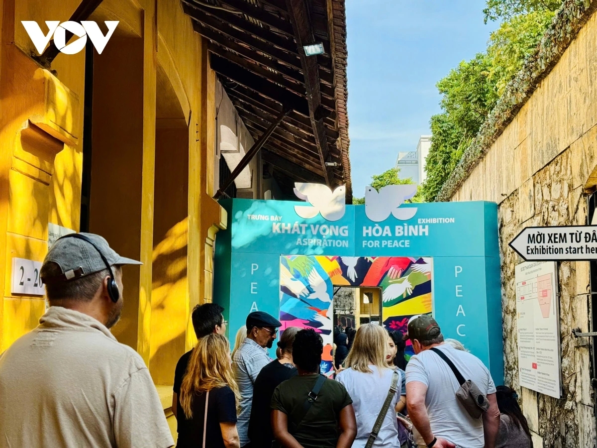 The exhibition "Aspiration for Peace" at the Hoa Lo Prison historical site (Photo: VOV) |
