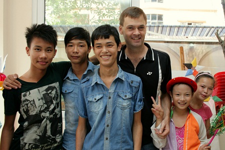 Der barmherzige Australier Michael Brosowski und Straßenkinder. (Foto: nguoiduatin.vn)