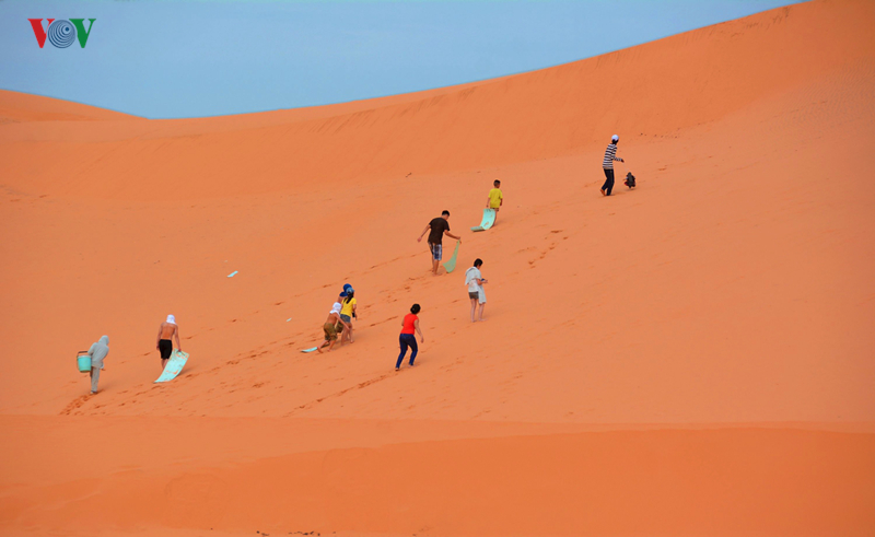 Viele Menschen bei einem Spiel auf der Sanddüne in Binh Thuan.