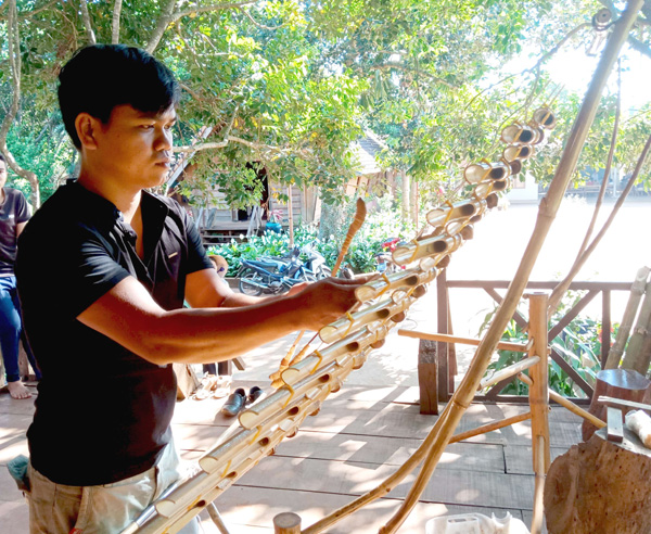 Ein Mann der Volksgruppe der Se Dang spielt das Bambus-Xylophon „T’rưng“. (Foto: VOV) |