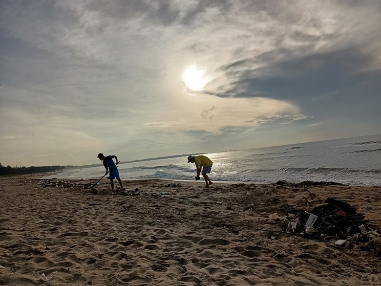 Doi Duong – Phan Ri Cua hat einen wunderschönen Strand und eine weiche, bogenförmigen Küste. Für Huynh Duc Phuc ist das Meer ein wichtiger Teil seines Lebens. Trotz seiner geschäftigen Arbeit geht er jeden Morgen ans Meer, um Müll zu sammeln. Phuc und seine Freunde sammeln oft Plastik und Plastikflaschen und verbrennen sie dann. Er sagte: