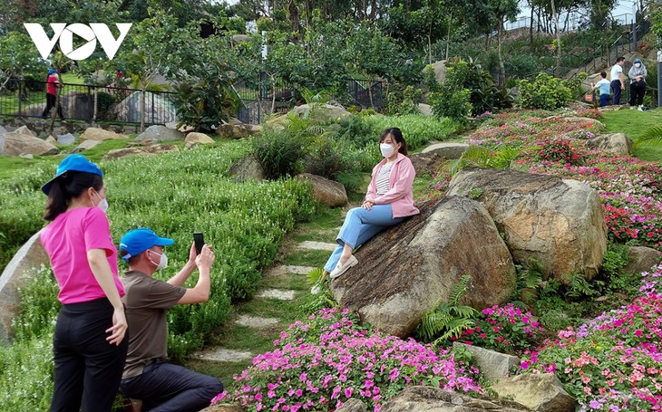Touristen machen Fotos im Berg Ba Den. (Foto: Ha Khanh/VOV) |
