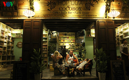 Touristen können köstliche Getränke in der Cafeteria in Hoi An probieren.
