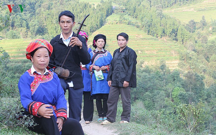 | Die Co Lao-Minderheit singt ihre Volkslieder auf dem Reisfeld. |