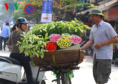 | Vom Blumendorf Tay Tuu werden die Lilien zum Verkauf in die ganze Stadt transportiert. |
