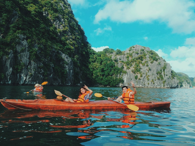 In Lan Ha haben Touristen die Chance, mit einem Kajak zu fahren. Dies ist ein interessanter Sport für Abenteuer- und Naturliebhaber.