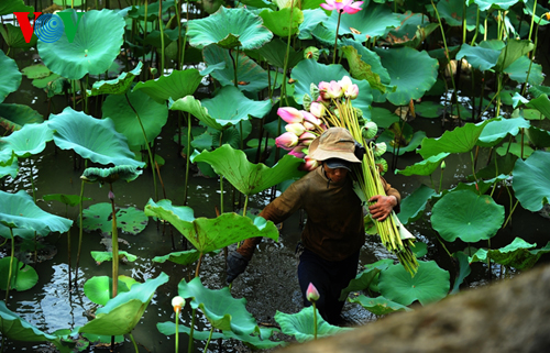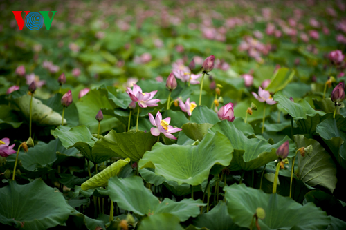 (VOVworld) - Beim Besuch in der zentralvietnamesischen Stadt Hue zu dieser Jahreszeit können Besucher viele Lotusseen bewundern, deren Duft den Königpalast umgeben. Die Lotuspflanzen wachsen vor allem in der Nähe der Zitadelle nördlich der Stadt beim Ngu Ha-Fluss und am Rand des Tinh Tam-See.