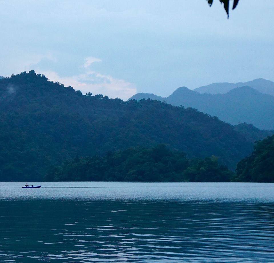 | Typisches Einbaum-Boot verstärkt die Schönheit des Ba Be-Sees. |