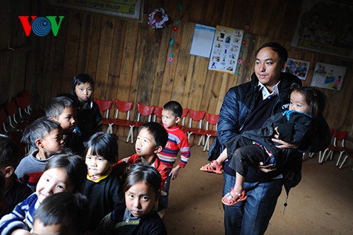 | Seit zwei Jahren arbeitet Erzieher Cu A Giang, ein Angehöriger der Mong-Minderheit, im Kindergarten Lao Chai in der Bergprovinz Yen Bai. Er kümmert sich dort täglich um die kleinen Kinder. |