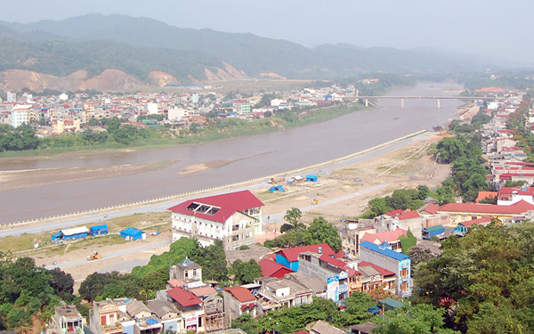 | Die Gegend der Kim Thanh-Brücke beim ersten Spatenstich damals. Die Brücke verbindet Lao Cai (Vietnam) und Hekou in der chinesischen Provinz Yunnan. |
