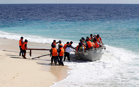 | Flaggenhissen auf der Insel Truong Sa. Foto: Tran Thanh. |