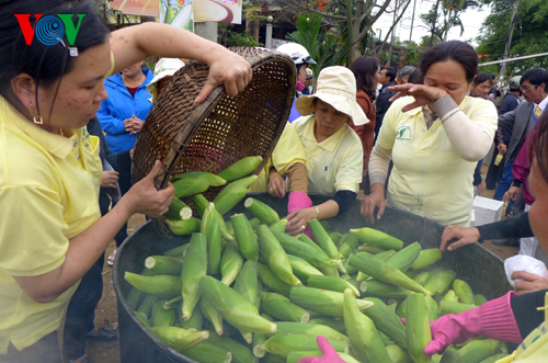 (VOVworld) – Der Mais ist schon lange mit dem Boden und der Menschen im Dorf Cam Nam in der Provinz Quang Nam verbunden. Am 15. Januar hat das Dorf Cam Nam ein Mais-Fest veranstaltet. Das Mais-Fest ist eine Gelegenheit für das Dorf, den Mais mit dem Markenzeichen Cam Nam den Touristen aus dem In- und Ausland vorzustellen. Dank des fruchtbaren Bodens am Ufer des Flusses Thu Bon schmeckt der Mais aus Cam Nam einzigartig. Während des Festes können die Bewohner und Touristen den ganzen Verarbeitungsablauf des Maises beobachten und viele Speisen aus Mais Cam Nam essen. Darunter sind gekochter Mais, gegrillter Mais, Kompott aus Mais usw. Während des Festes wurde zum ersten mal die Produktion und die Zubereitung der Produkte aus Mais präsentiert. Dadurch werden alle Bevölkerungsschichten mobilisiert, die traditionelle Spezialität von Cam Nam zu bewahren. Die Stadt Hoi An verfügt derzeit 150 Hektar Fläche zum Anbau des Mais. Rund 100 Haushalte pflanzen Mais und 16 Familien beschäftigen sich mit dem Maiskochen und liefern dann in der ganzen Provinz Quang Nam rund 1000 Maisstücke pro Tag. Jeder Hektar Mais bringt den Bewohnern hier etwa 2100 Euro. Hier sind einige Fotos über das Mais-Fest in Hoi An.