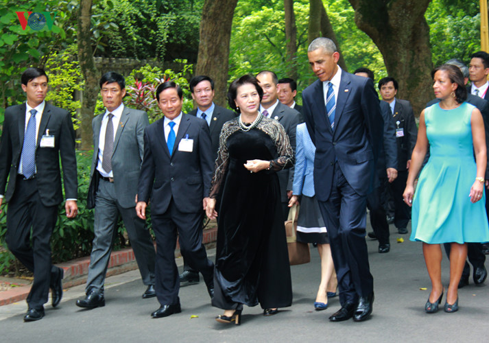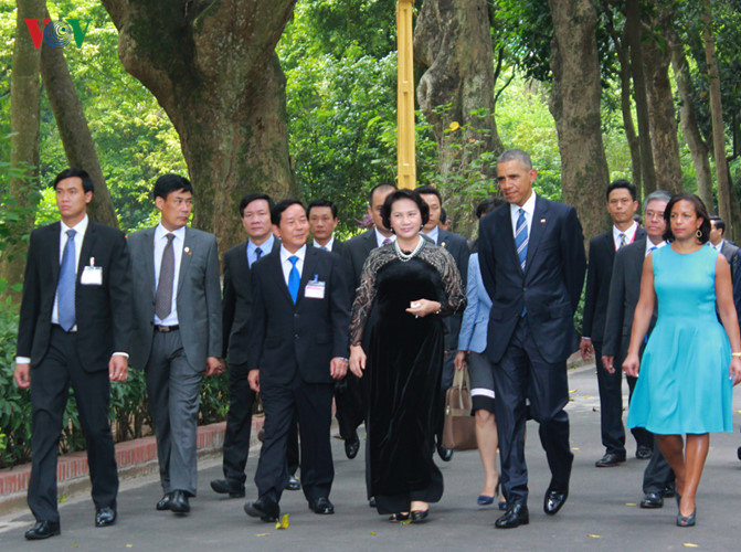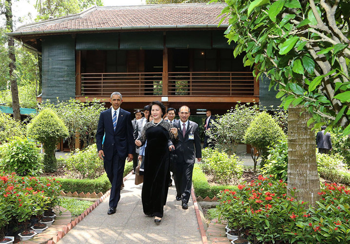 (VOVworld) – US-Präsident Barack Obama hat während seines Vietnam-Besuchs das Stelzenhaus Ho Chi Minhs besucht. Er und Vietnams Parlamentspräsidentin Nguyen Thi Kim Ngan liefen vom Präsidentenpalast zum Haus.