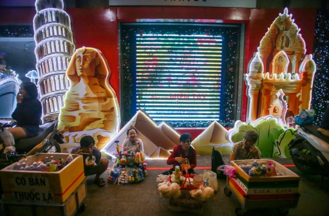 Zahlreiche Gebäude und Einkaufszentren in Ho Chi Minh Stadt sind zu Weihnachten glänzend dekoriert. Abends kommen viele Menschen, um Fotos zu machen.