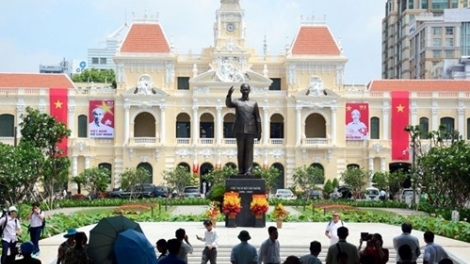 (VOVworld) – Die neue Ho Chi Minh-Statue befindet sich vor dem Sitz des Volkskomitees von Ho Chi Minh Stadt. Ein Tag nach der Einweihung haben tausende Menschen Kränze an der Statue niedergelegt und vor der Statue Fotos gemacht.