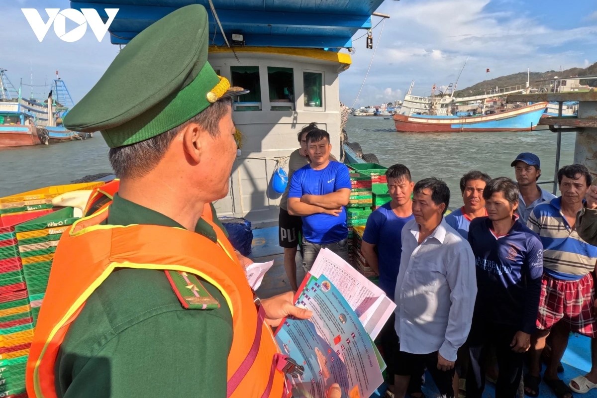 Der Leiter der Arbeitsgruppe gegen die IUU-Fischerei der Grenzsoldaten in Ba Ria-Vung Tau, Oberst Dang Cao Dat, mobilisiert die Fischer zum verantwortungsvollen Fischfang. (Foto: Luu Son/VOV) |