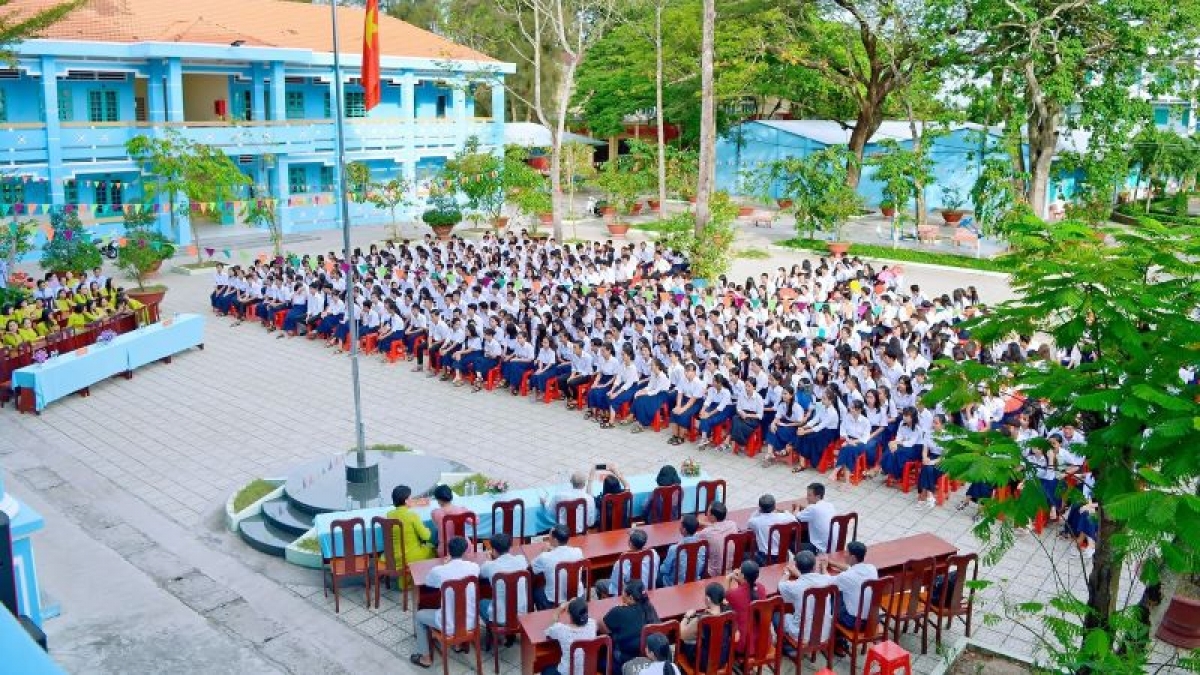Die Internatsschule für ethnische Minderheiten im Kreis Chau Thanh in der Provinz Soc Trang wurde modern und groß gebaut. Der Schulhof ist sauber und übersichtlich. Tran Thi Chanh Tha ist Neuntklässlerin. Sie lernt hier seit vier Jahren. Sie erzählt, dass die Eltern der Schüler die Ausbildungskosten hier nicht bezahlen müssen.