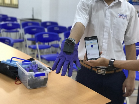 Der von Pham Thien Tan und Chu Hoang Minh Duc angefertigte Handschuh sieht sehr einfach aus. Aber wenn der Benutzer ihn anzieht und seine Finger bewegt, wirkt er wie ein Zauber. Die Bewegungen der Finger werden in normale Sprache umgewandelt. Dadurch können die Menschen verstehen, was Taube sprechen wollen. Außerdem werden die Geräte im Handschuh mit einigen einfachen Sätzen installiert. Diese Sätze werden sogar ins Englisch übersetzt. Einer der Erfinder Pham Thien Tan sagt: