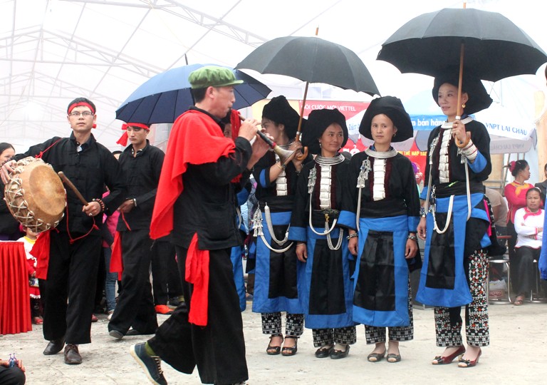 Bei Hochzeiten wird die Trompete zu unterschiedlichen Zeitpunkten gespielt, deren Töne sich jedem Kontext anpassen sollen. Am interessantesten und bedeutungsvollsten sind die Rhythmen für die Eltern der Braut. Dabei blasen die Spieler die Trompeten mit langsamen Melodien, die etwas melancholisch und traurig klingen kann, wenn die Eltern sich von ihrer Tochter verabschieden. Tan A Senh aus dem Kreis Sin Ho in Provinz Lai Chau ist ein bekannter Trompetenspieler. Er erzählt: