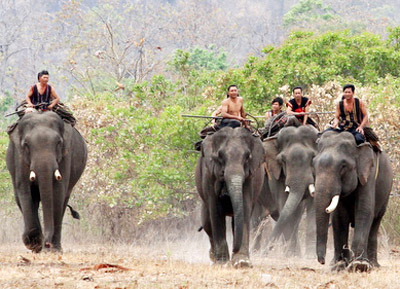 Die gezähmten Elefanten in Dak Lak sind das einzigartige Symbol der heimischen Bewohner geworden. Sie sind in allen ihren täglichen Tätigkeiten zu sehen. Die Elefanten arbeiten auf den Feldern, sie tragen Reis nach Hause, oder ziehen Holz für den Hausbau. Es ist außerdem interessant für die Touristen beim Besuch des Dorfes Don oder des Kreises Lien Son, dass sie die Elefanten reiten können und die Landschaften in Tay Nguyen besichtigen. Bei der Reise auf dem Rücken der Elefanten können die Touristen durch Erzählungen vom Zähmer mehr über die Elefanten in Tay Nguyen kennen lernen. Dazu sagt Y Tinh des Dorfes Jun: