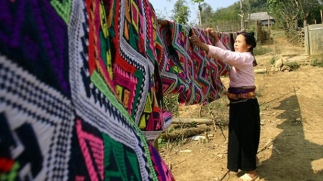 (VOVworld) – Die Muong haben die Tradition, Baumwolle anzupflanzen, Faden abzuwickeln und Stoffe zu weben, um den Bedarf an Kleidungen in ihrer Familie zu decken. Kleidungen und Kleider der Muong werden mit Handarbeit angefertigt. Mit geschickten Händen stellen die Muong Stoffe mit Mustern her, die typisch für Sitten und Bräuche ihrer Volksgruppe sind.