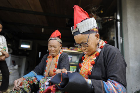 Zwei Frauen der Volksgruppe der Dao in Lai Chau bei der Stickarbeit. (Foto: Hoang My Hanh)