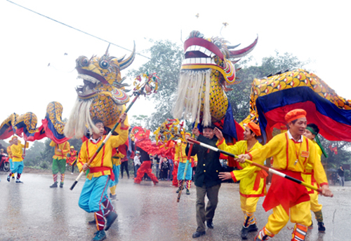 Dorffeste in vietnamesischen ländlichen Gebieten werden meistens Anfang des neuen Jahres nach dem Mondkalender veranstaltet. Mit heiligen Ritualen, wie beispielsweise Gebetszeremonien und Umzügen, sind Dorffeste die attraktivsten und lebhaftesten Zeitpunkte.